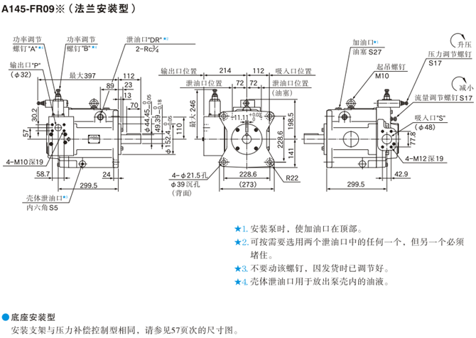 A145-FR09※(法兰安装型)油研柱塞泵安装尺寸图: