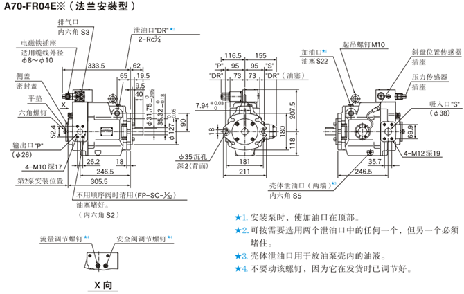 A70-FR04E※(法兰安装型)油研柱塞泵安装尺寸: